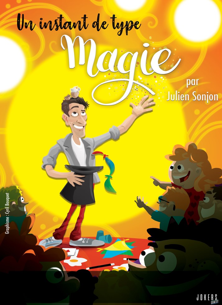 Julien Sonjon vous embarque dans un moment interactif et palpitant où vous donnerez vie à ses tours de magie. Cet artiste aux talents multiples est un improvisateur - comédien - magicien des plus énergiques. Il vous mijote plein de surprises, afin de mettre des étoiles plein les yeux, aussi bien des enfants que de leurs parents.